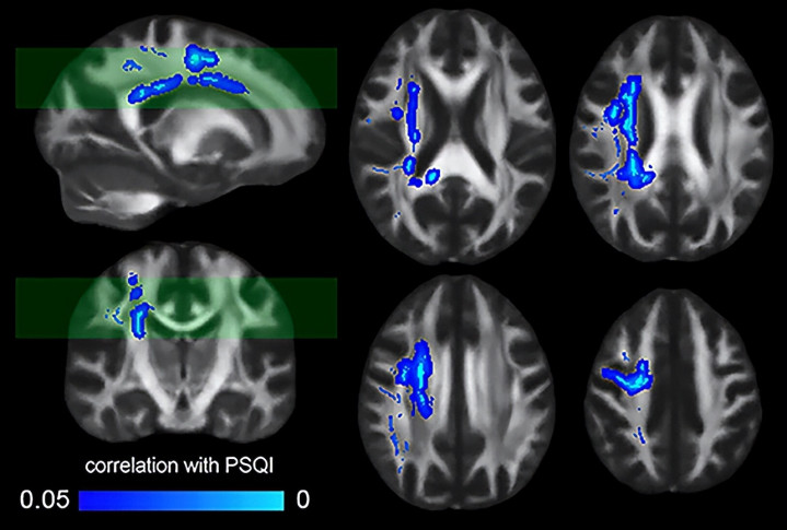研究人员将人脑白质结构与参与者的匹兹堡睡眠质量指数(PSQI)评分进行了比较。(Simayi等人,《美国国家科学院院刊》,2026)